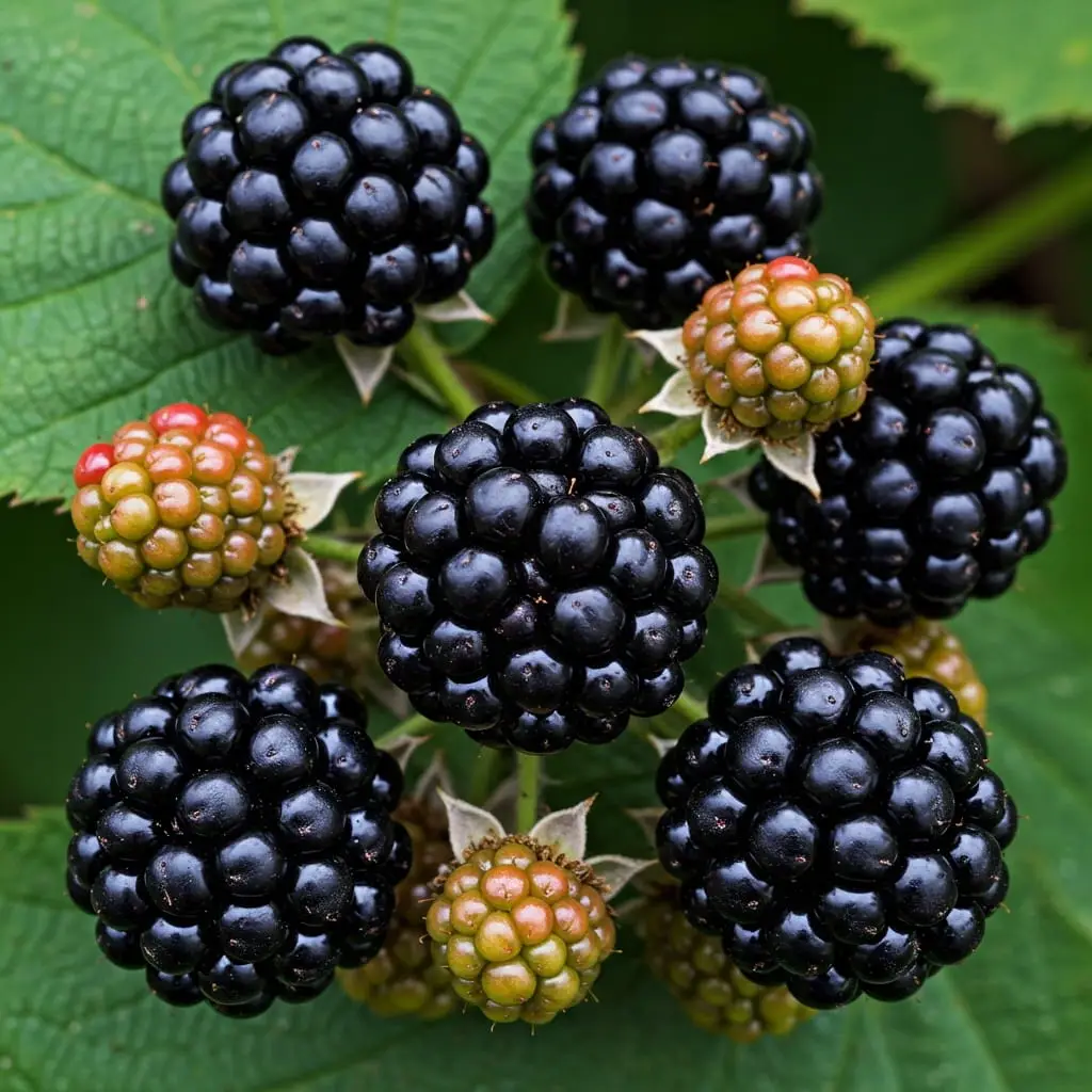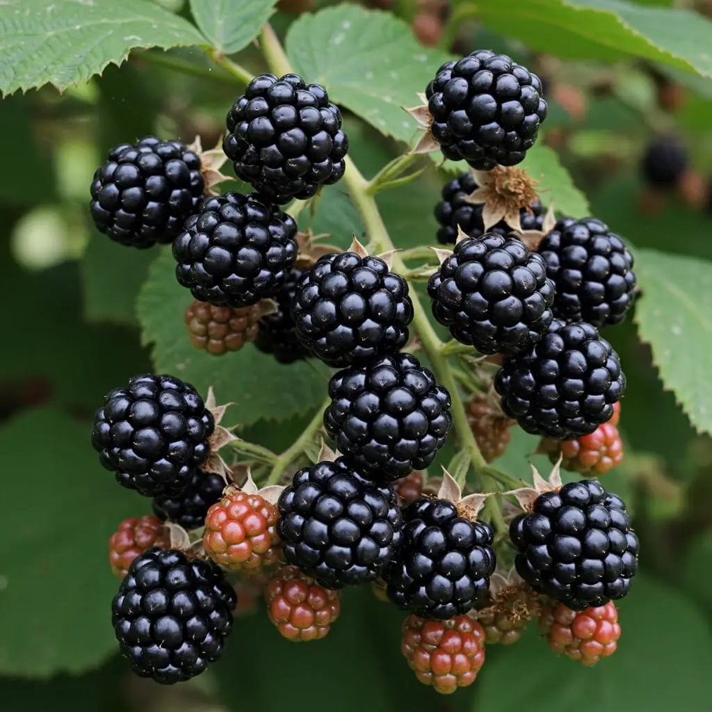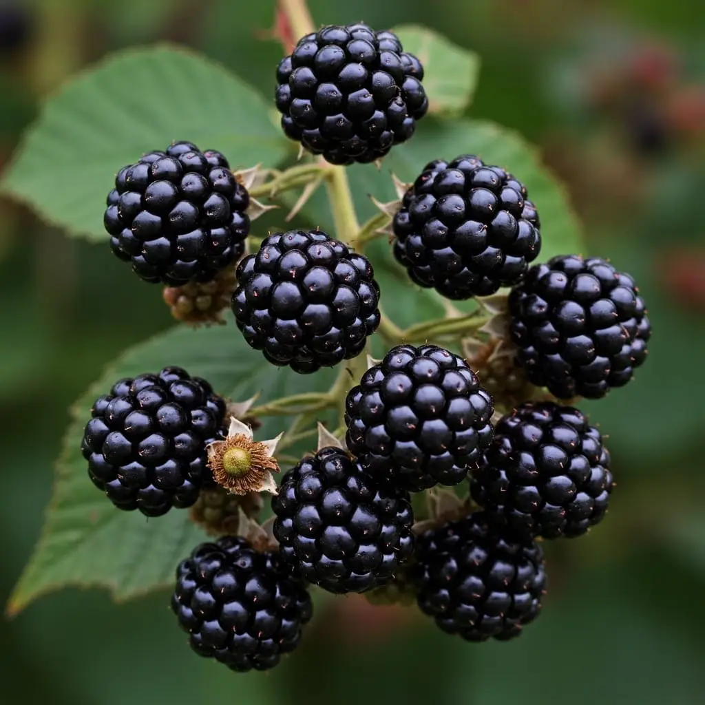 Jeżyna 'Black Satin' – popularna odmiana bezkolcowa o słodkich, dużych owocach